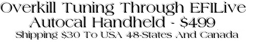 ![]() EFI Live Autocal: For those with an automatic equipped vehicle, we offer the Autocal tuning option in order to provide you with transmission tuning, something not available with our Diablosport option. I've always provided myself on being the guy who can sort out a poor performing factory transmission and with the 1.4 Turbo, you'll enjoy the difference Overkill transmission tuning makes.